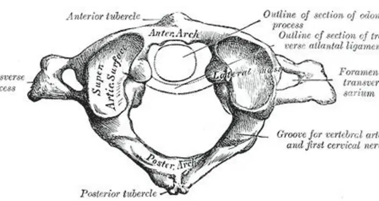 The Atlas Bone & When You Might Need an Adjustment Exploring the Unique Causes of Headaches in Denver and How Chiropractic Care Provides Relief Much like the Atlas in Greek mythology who supported the entire world, the function of the atlas bone is critical: it supports your entire head. The atlas bone (C1) connects your skull to your spine, and — with the support of the axis vertebra (C2) just below — the atlas determines your head’s full range of motion. Misalignments in the atlas bone can cause chronic pain, stress, decreased range of motion, and tension in the head or neck. Keep reading to understand this critical vertebra and determine when a misaligned atlas may be causing you issues. From Anatomy, Head and Neck: Cervical Vertebrae (Public Domain) What Is the Atlas Bone? The atlas bone is the top bone or first cervical vertebra connecting your skull to your spine. It’s also known as the C1 vertebra in your cervical spine . Your whole spine has 7 cervical vertebrae that connect to the 12 thoracic vertebrae, which connect to your 5 lumbar vertebrae. Those lowest 5 vertebrae make up the lumbar spine and connect to the sacrum, then the coccyx at the base of your spine. Uniquely among vertebrae, the atlas vertebra at the very top of your spine lacks a vertebral body, spinous process, and the intervertebral discs found elsewhere in the spinal column. The atlas is a ring-like structure that joins the occipital bone above it with the axis, or C2 vertebra, below it — thanks to both the atlantooccipital joint and the atlantoaxial joint. These joints belong to a class of synovial joints that act as pivot points in the body. In this case, the pivot is your head movements. How does the atlas bone affect overall health? A misaligned atlas bone directly impacts headaches, migraines, neck pain, range of motion, and balance. A dysfunctional atlas may indirectly contribute to chronic pain, inflammation, brain fog, and mental health problems. Let’s dive into the atlas bone’s support structure and general anatomy to get a deeper understanding of how it works. Here are the major parts of your atlas bone: Lateral masses Transverse process Anterior arch Posterior arch Vertebral foramen Lateral Masses The lateral masses (Massa lateralis atlantis) of the atlas bone are its thickest and sturdiest parts, which is by design. The pair of masses support the weight of your skull. Superior and inferior facets, or small joints, are found on each side of the lateral masses. The superior articular facets on the superior surface connect to the occipital condyles on your occipital bone. These structures allow for neck flexion and nodding movements of the head. This part of your atlas allows you to nod your head “yes” — why the atlas is also called the “yes bone.” The inferior articular facets on the inferior articular surface allow articulation with the axis, or second cervical vertebra, and head rotations. Essentially, these facets are where the two joints meet. Transverse Processes The transverse processes are large projections from the lateral masses that attach to the muscles here and help you rotate your head and neck. These muscles include the rectus capitis lateralis, a small muscle important to lateral bending of the occiput, or the back of your head. The transverse foramen in the transverse processes is a hole for your vertebral artery. From Anatomy, Head and Neck: Atlantoaxial Joint (© 2024, StatPearls Publishing LLC) Anterior Arch The anterior arch is concave on one side and convex on the other. That shape allows it to work as a connecting segment for the odontoid process (dens) of the axis below and the transverse ligament. From above, it attaches the long muscle of the neck (longus colli muscles) with the anterior tubercle. The upper border of the anterior arch attaches to the anterior atlantooccipital membrane. The lower border attaches to the anterior atlantoaxial ligament and the anterior longitudinal ligament. Most importantly, these connections are a pivot point with the axis. Posterior Arch The thin posterior arch that ends behind the posterior tubercle makes up about two-fifths of the circumference of the atlas ring. The posterior tubercle sits at the apex of the posterior arch and serves as an attachment site for the nuchal ligament (ligamentum nuchae), which spans the 7 vertebrae of the cervical spine. A groove in the posterior arch allows the vertebral artery to pass through here and the foramen magnum and continue along the spinal column. Defects in this area that lead to interference between the atlas and your skull can cause neurological problems down the line if left untreated. Vertebral Foramen The vertebral foramen is a large opening in the bone for both the spinal cord and the odontoid process of the axis. On the axis side, it serves as the start of a pivot point for your C2 vertebra. Read Next: Trigeminal Neuralgia vs TMJ, What Are They? Atlas Misalignment Atlas misalignment may cause various health problems and impact the structural integrity of your spine over time. How does your atlas get misaligned? Your atlas can get misaligned due to injury, abnormalities in your bone structure , or a variety of conditions affecting the spine and musculoskeletal system. Poor posture can also cause atlas misalignment over time. One rare injury that directly affects the atlas is a Jefferson fracture, most often seen alongside spine or head injuries. Generally, atlas fractures are more common in the elderly. It can be difficult to know how many people have an atlas misalignment, as many patients don’t seek care immediately. Atlas misalignment is among the most common conditions addressed by chiropractic care. What are the symptoms of a misaligned atlas? The symptoms of a misaligned atlas include: Headaches Migraines Pain in the jaw, neck, and back, and muscle stiffness Hearing problems, e.g. tinnitus, hearing loss, inner ear conditions Shoulder pain or misalignment of the sc